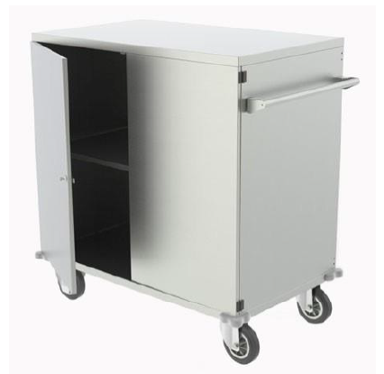 - 2 portas frontais fabricadas em chapa de aço inox com fecho e puxadores